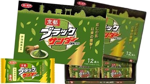 ユーラクの京都ブラックサンダーは、京都・大阪限定の特別な味わい。12袋入りで、濃厚なチョコレートとサクサクのクッキーが絶妙に組み合わさっています。手土産や自分へのご褒美にぴったりです。
