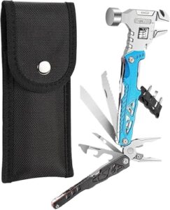 キャンプ ハンマー 多機能 折りたたみ式|ペグハンマー&ペグ抜き・プライヤー・レンチ一体型 ステンレス製で耐食性に優れ、コンパクト収納で車載携帯に便利 テント設営・アウトドア作業用(ブルー)