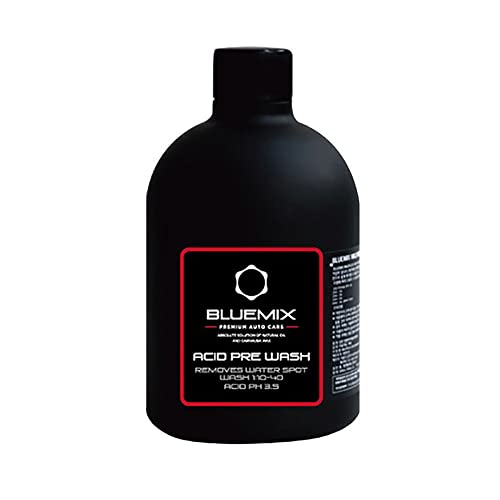 BLUEMIX アシッドプレウォッシュは、高い生分解性を持つ弱酸性カーシャンプーです。軽いミネラル汚れやイオンデポジットに最適で、コーティングに影響を与えず、短時間のすすぎで高い洗浄力を発揮します。500ml。