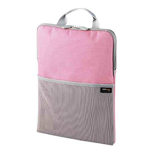 エレコムの11.6インチパソコンケース。タブレット用の抗菌、撥水仕様。CORDURA(R)素材使用、持ち運び便利なハンドル付き。ネームタグ付きで個人の特性を反映しやすい。ピンク色。