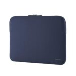 エレコムの14インチPC用インナーバッグは、ネオプレン素材で衝撃を吸収し、軽量設計のネイビー色です。内部にはポケットがあり、アクセサリーも収納可能。