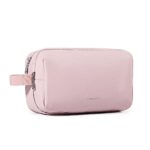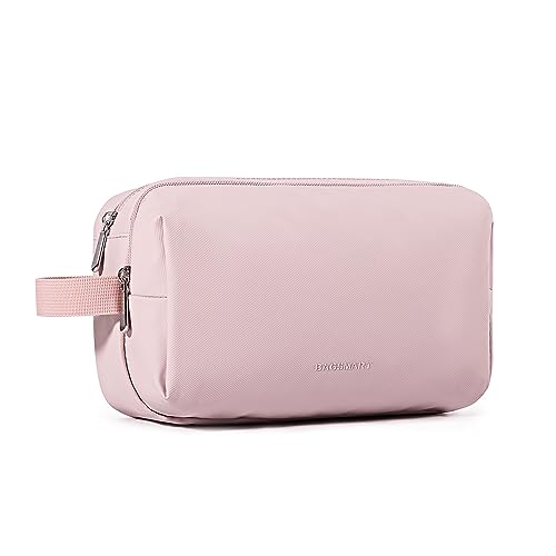 BAGSMARTトイレタリーバッグは防水・軽量で、洗面用具や化粧品を収納できます。旅行や出張に最適の小型自立型ポーチ。おしゃれなピンク色。
