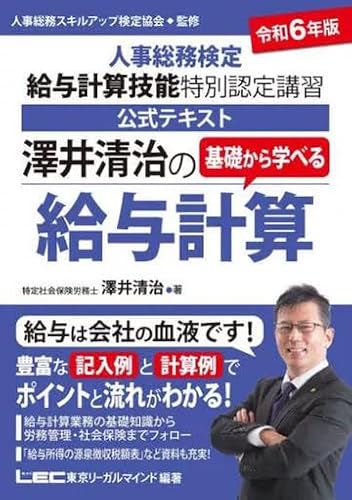 「令和6年版 澤井清治の基礎から学べる給与計算」は、給与計算技能を学ぶための公式テキストです。人事総務検定に対応し、基礎から応用まで体系的に学べる内容になっています。
