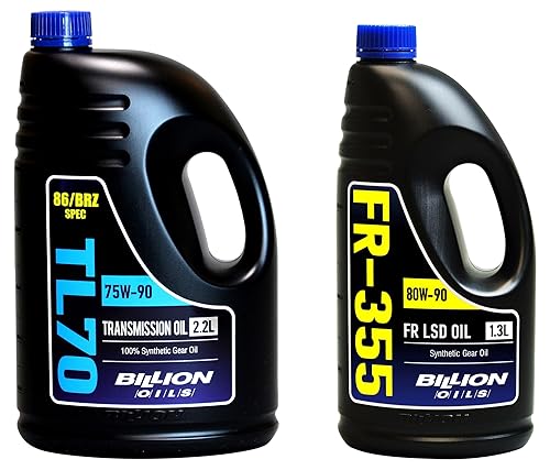 ビリオン オイルズのTL70は86/BRZ専用のマニュアルトランスミッションオイル2.2L、FR-355はFR/4WD OPENデフ専用のデフオイル1.3Lです。高性能なオイルでスムーズなシフトと優れた駆動性能を提供します。