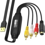 USB2.0ビデオキャプチャーボードで、1920×1080pの高解像度に対応。VHSや8mmのダビングが可能で、Windows XP/8.1/10/11、MACに対応。日本語取扱説明書付き。