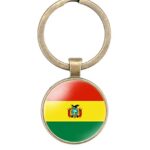 ボリビアの古代デザインを施したキーリング。男性・女性向けのギフトに最適。合金製で、象嵌ガラス素材を使用。サイズはワンサイズで、耐久性があります。