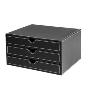 BACKOLU デスク 収納 卓上 レターボックス 書類収納 書類ケース デスク puレザー 引き出し付きチェスト トレー キューブボックス多機能PUレザーオーガナイザーファイル内閣府は 引き出し付きトップストレージ用品 (黒の横長デザイン,33*25*17CM) [並行輸入品]