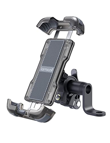 Lamicallのバイク用スマホホルダーは、片手操作で使いやすく、360度回転可能。ミラーマウント付きで、防振設計。iPhone 12~16シリーズ(4.7~6.8インチ)に対応。