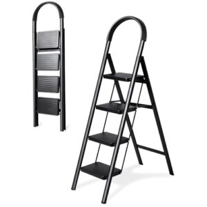 OSATA 脚立 折りたたみ式 手すり付き 室内・屋外用 耐荷重150KG コンパクト 省スペース 滑り止め付き 持ち運び便利 (ブラック, 4段)