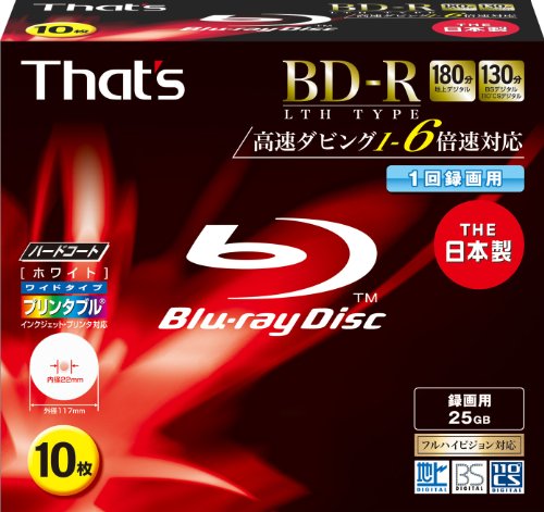 太陽誘電製のBD-Rビデオ用ディスクは、6倍速で180分の録画が可能な25GBの容量を持ち、ハードコート仕様で耐久性も優れています。ワイドプリンタブルデザインで、5mmPケースに10枚入っています。