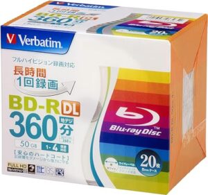バーベイタム Verbatim 1回録画用 ブルーレイディスク BD-R DL 50GB 20枚 ホワイトプリンタブル 片面2層 1-4倍速 VBR260YP20V1