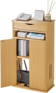 STEHEMO木製ルーターシェルフは、プロジェクターやルーターを収納できる無垢材製の整理ボックスです。ケーブル管理も簡単で、組み立て不要のブラウンカラーが特徴。
