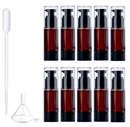 真空ボトル 30ml 10個入り ポンプボトル 化粧品小分け ポンプタイプ エアレス プッシュ容器 温泉 旅行 プラスチック容器 詰め替え容器 携帯用 液体用 乳液用 旅行用品 漏れ防止 (茶色)の製品情報