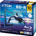 TDKのBD-R 25GBは、1-4倍速対応の録画用ブルーレイディスクです。ホワイトワイドプリンタブル仕様で、10枚入り、5mmスリムケースに収められています。