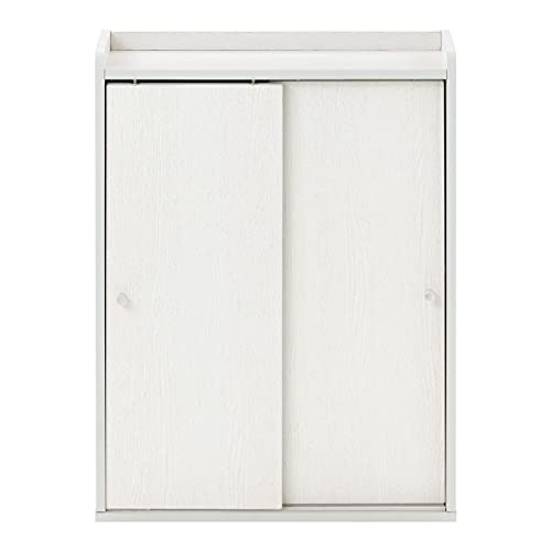 ぼん家具のトイレラックは、幅58.7×奥行17×高さ76cmのスリムな収納棚です。掃除用具を入れられる引き戸付きで、トイレのスペースを有効活用できます。デザインはホワイトウッド調で、おしゃれな雰囲気を演出します。