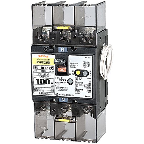 テンパール工業の単3中性線欠相保護付配線用遮断器 BU10301KC07Vは、定格100A、リード線付で、電源の安定性を保つための安全機能を搭載しています。