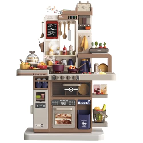 Button Moonの88点豪華版キッチンおもちゃ。93cmサイズ、リアル料理音と噴霧機能、冷蔵庫、オーブン付き。親子でごっこ遊びに最適。誕生日・クリスマスプレゼントにもおすすめ。