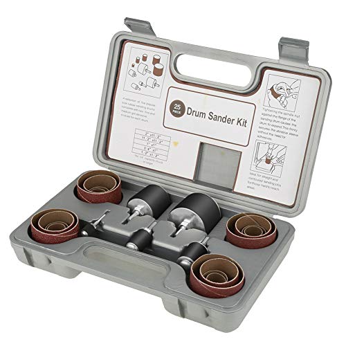25個のスピンドルサンディングドラムサンダーツールキット。収納付きで木工やDIY、大工用に最適。ボール盤と互換性あり。