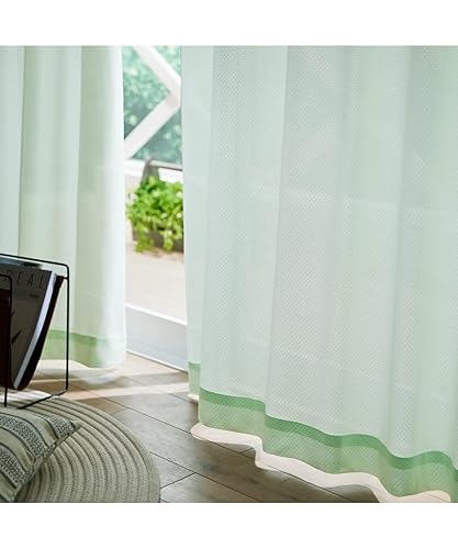 ニッセンのレースカーテン「ミラー」は、C・グリーン色で遮像・遮熱・UVカット機能を備えています。サイズは幅100×長さ183cmの2枚組です。