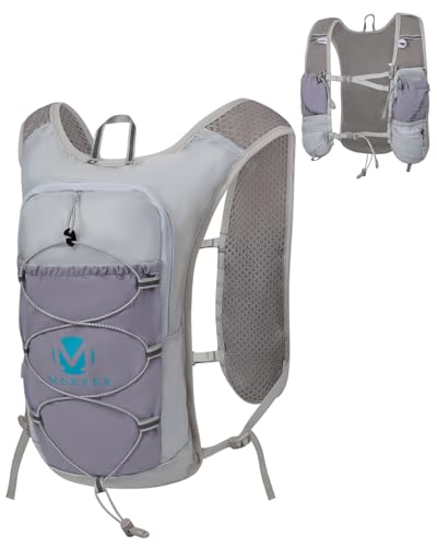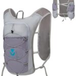 超軽量180gのランニングバッグ。トレイルランやマラソン、ジョギングに最適。通気性があり防水機能付き。豊富なポケットと光反射ストラップで安全性も考慮。男女・子供兼用のグレー色。