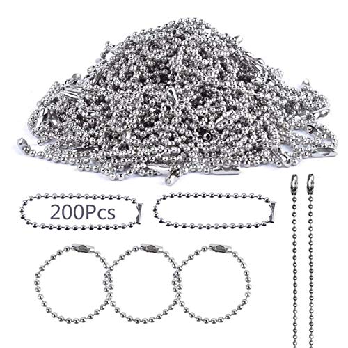 ボールチェーン約200Pcs、チェーンキーホルダー、ビーズ素材、コネクター付き。全長約12cm、ボール径約1.8mm。ハンドメイドアクセサリーパーツ、シルバー。