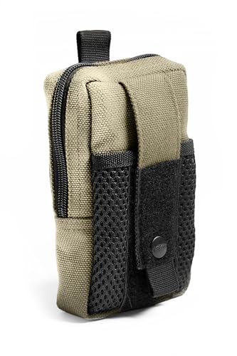 高耐久1200D素材のアウトドアポーチ。スマホや小物を収納でき、ベルトやハンドル、サドルに取り付け可能。多用途で使えるミリタリーバッグ。日本ブランドの国内正規品。カラーはライトカーキ。
