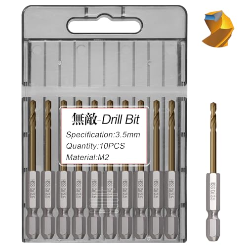 無敵10本組3.5mm六角軸HSSドリルビット M2C型開先 チップ排せつ 鉄鋼用ドリル ドリルセット 対応材鉄 アルミニウム ステンレス鋼 銅 (3.5mm10pcs) 高価買取中