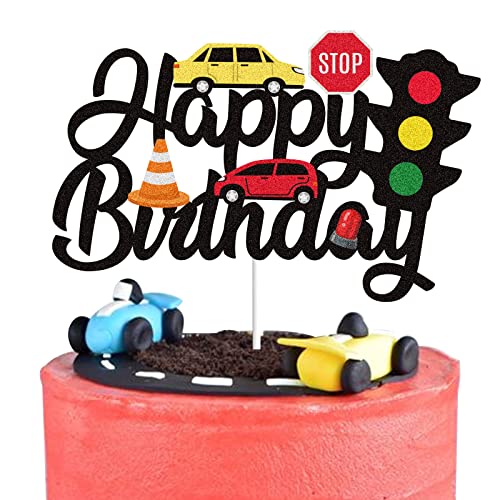 交通 交通灯 ハッピーバースデー ケーキトッパー ブラック グリッター 車 トラック 道路標識 交通 ケーキ 装飾 道路標識 ストップ ライト スピード ライト テーマ パーティー用品の高価買取
