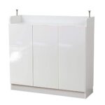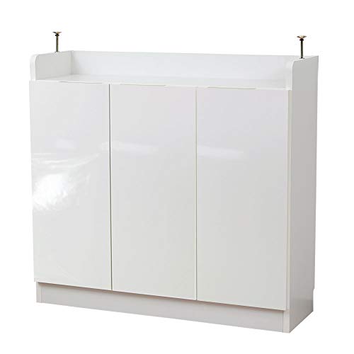 工場直販のカウンター下収納。ホワイトの鏡面仕上げで艶あり、奥行29×幅90の3枚扉タイプ。シンプルでスタイリッシュなデザインが特徴で、収納力も抜群。