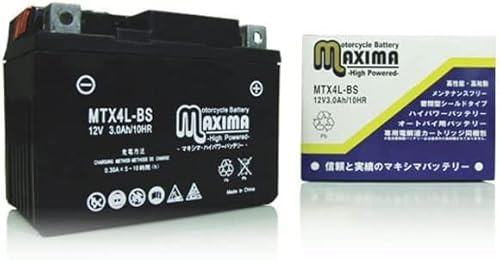 マキシマバッテリー MTX4L-BSは、シールド式で液入れ済み、充電済みのバイク用バッテリーです。TZR250、R1-Z、メイト80、メイト90に対応。ロードサービスも付いており、安心して使用できます。