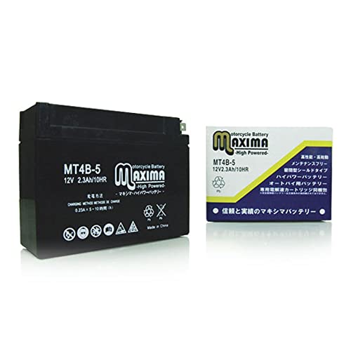 マキシマバッテリー MT4B-5は、シールド式で液入れ充電済みのバイク用バッテリーです。ロードサービス付きで、セピア レッツ2Sに適合します。高い信頼性と充実したサポートが魅力です。