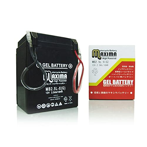 マキシマバッテリー MB2.5L-Xは、シールド式のジェルタイプバッテリーで、充電済みの状態で提供されます。ロードサービス付きで、ニューメイトV50B/V50Nに対応します。