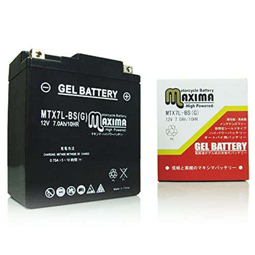マキシマバッテリー MTX7L-BSは、シールド式で充電済みのジェルタイプ。バイク用の7L-BSサイズで、エリミネーター250Vにも対応。ロードサービス付きで安心の品質。