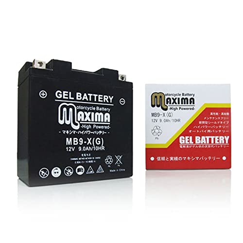 マキシマバッテリー MB9-Xは、シールド式のジェルタイプバッテリーで、充電済み。ロードサービス付きで、バイク用としてスペイシーやシルクロードCT250に対応。信頼性の高い性能を誇ります。