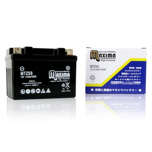 マキシマバッテリー MTZ5Sは、シールド式で液入れ充電済みのバイク用バッテリーです。ロードサービス付きで、KLX110L、KSR110(フィリピン仕様)、KSR110PRO(タイ仕様)に対応しています。