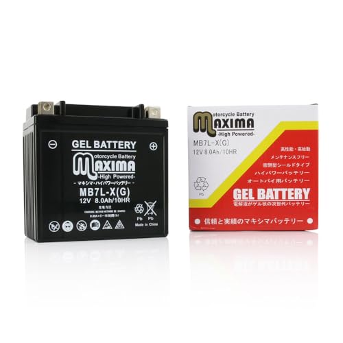 マキシマバッテリー MB7L-X(G)は、シールド式のジェルタイプで、充電済みのバイク用バッテリーです。SR500、SR500S、SR500スペシャル、W1、W2、W3に対応し、ロードサービス付きで安心です。