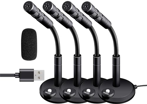 USB接続のコンデンサーマイクで卓上タイプ。360°集音可能、スポンジ付きで音質向上。カラオケ、録音、生放送、ゲーム実況、オンライン会議に最適。角度調節可能で在宅勤務にも便利な4台セット。