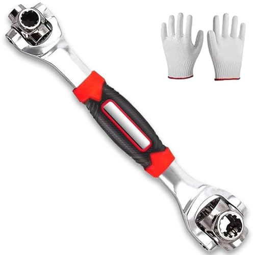 Breezliyの8 in 1万能レンチは、360°回転するステンレス製スプラインソケットで、8-19MMとインチサイズのナットに対応。車やバイクの修理やDIYに最適。作業手袋付きで便利です。