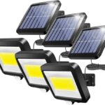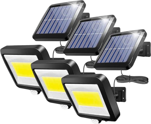 Thecomのソーラーライトは屋外用の防犯・ガーデンライトで、IP65防水設計。人感センサー搭載で、太陽光発電。庭や玄関、駐車場などに最適な3台セットの100COBモデルです。