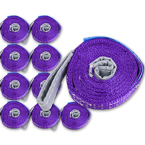 スリングベルト1t、両端アイ付きのポリエステル製吊上げベルト。10本セット、各1m×25mm。建築や荷揚げ作業に最適な安全ベルトです。