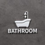 Signjapanのルームサイン、BATHROOMはブラックとホワイトのデザインで、バスルームや浴室のドアに最適。タイプ1のホワイトは、シンプルでおしゃれな表札や室札として使用できます。