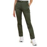 [キャロウェイ] レディース ロングパンツは、8WAYストレッチと撥水性を兼ね備えたゴルフ用パンツです。カーキ色のLサイズ。動きやすさと快適さを提供します。