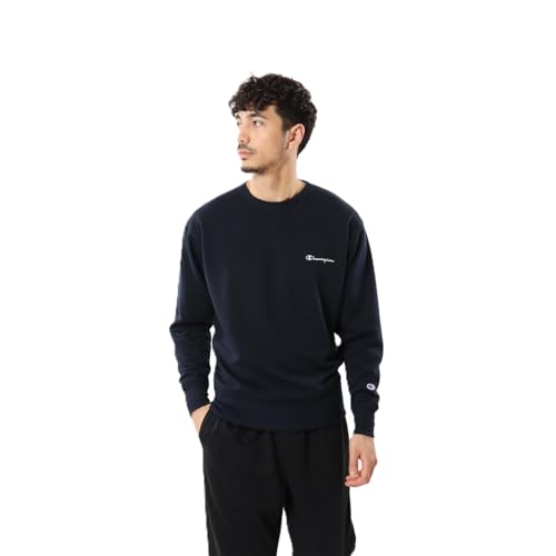 スウェット長袖シャツ。裏毛素材で快適な着心地。刺繍スクリプトロゴが特徴的。クルーネックデザイン。メンズスポーツやトレーニングに最適で、サイズはXXLまで対応。