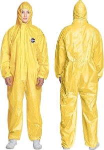 AXEL Hazmat Suits使い捨て | 5枚パック | フード付きイエロー保護つなぎ服 – 化学的保護 工業用つなぎ 男女兼用 – 通気性&防水 | サイズ XL
