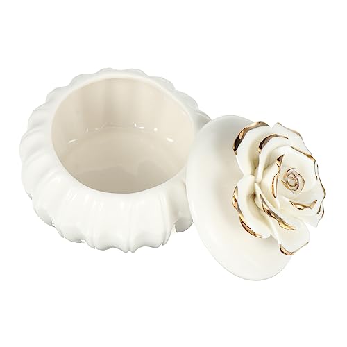LALADEFIEEの蓋付きコンパクト収納ケースは、シーシー陶磁製のローズデザインで軽量。小物やアクセサリーに最適な省スペースタイプのジュエリー収納ボックスです。