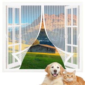 網戸 窓用網戸 窓カーテン蚊帳 83 x 75 cm 玄関マグネット式ドアカーテン,玄関防虫ネットマジクプ付き,多サイズ調節可能適用任意のサイズりドア/ベラダ, ホワイト