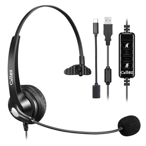 USBノイズキャンセリングマイク付き片耳ヘッドセット。Type-C接続で330°回転、音量調節・ミュート機能あり。PCやスマホ、Mac対応。SkypeやZoomに最適。軽量で快適設計。コールセンターやリモートワークに最適。