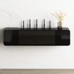 WYRNOBRX 木製ルータースタンド 壁掛け式WiFiルーター収納ボックス通気孔付きモデムホルダー電源コード管理隠し整理器オフィスとホームデコレーションに最適,黒,L60*H20*W20の高価買取