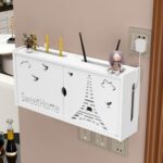 WYRNOBRXの木製WiFiルーター収納ボックスは、モデムスタンドとしても使え、ケーブル収納が可能。両開きドア設計で、オフィスや家庭のリビングに最適な装飾用カバーです。サイズはL51*H24*W11cm、色はホワイト。
