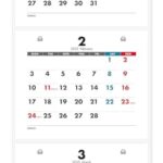 あさひ高速印刷の2026年・月曜始まりの3ヵ月カレンダーです。壁掛けタイプで、組替え可能なA版。見やすく、スケジュール管理に便利です。